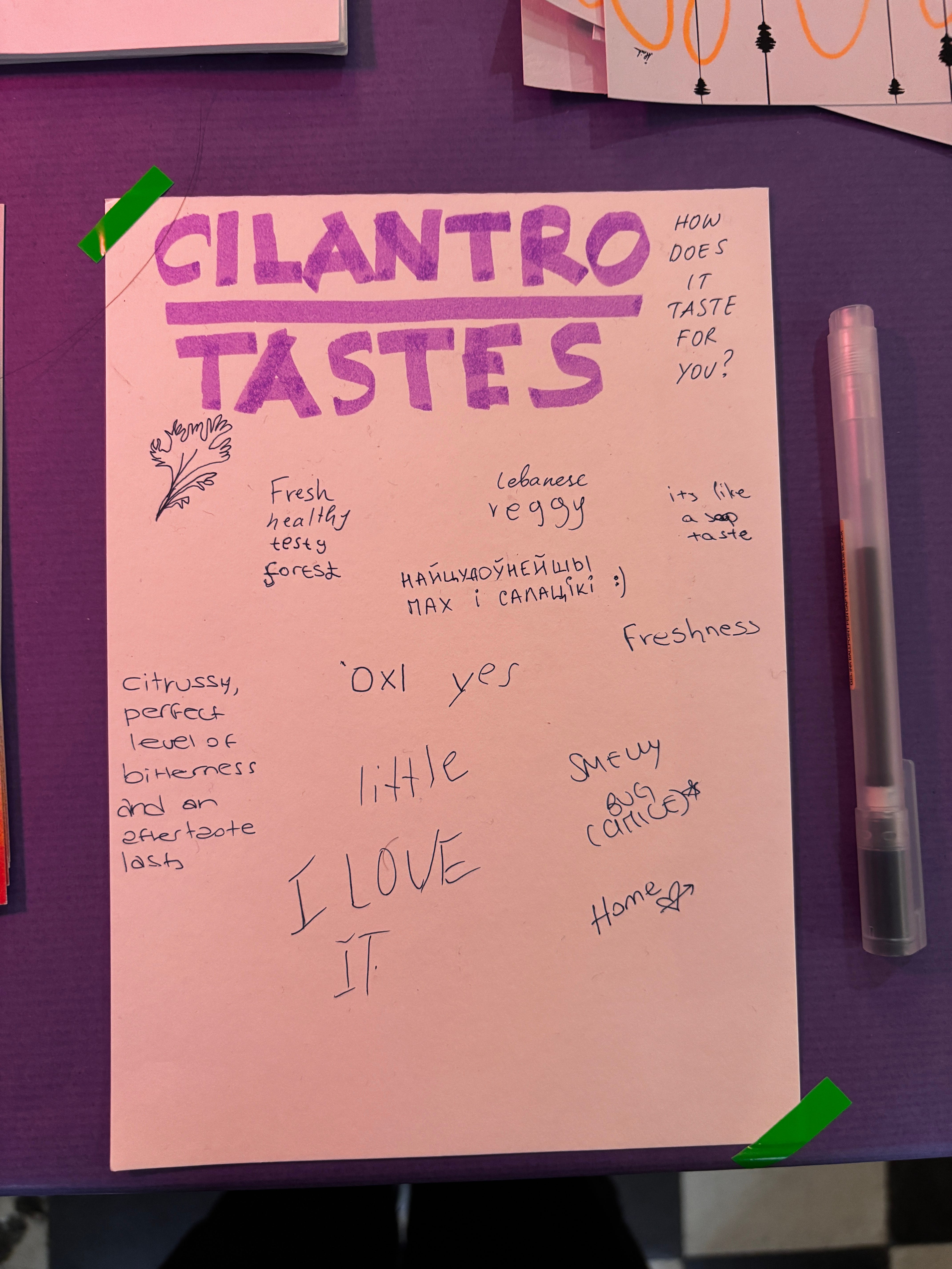 ▲ <Cilantroversy joined Street Vendor Publisher at the Bangkok Art Book Fair/> My friends Chae and Supi’s project was part of BKKABF 2025 last weekend! They invited us, the Blob Shop Collective members, to take part in the journey with a contribution of our current obsession. Of course, I went on to continue my research on coriander: I asked friends, family, and random people about the taste of cilantro for them. I wish I could be there in person, but at least a piece of me is there, thanks to Chae for producing the little cute boxes with cilantro tastes!