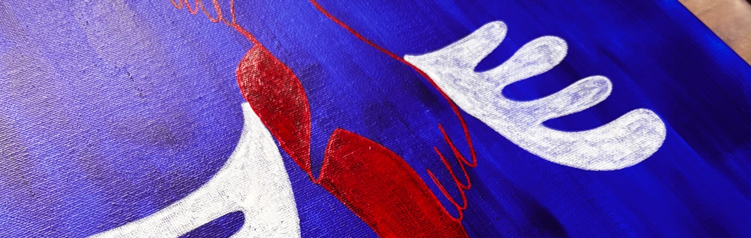 What: Each artist was matched with one Woman Survivor, part of the Emprove family. My buddy is Michaela (Misheto) and we have exchanged stories, feelings, and hopes since November. For this week, I challenged myself to work on canvas with acrylic. Not my most familiar medium, but one that travels easily and stands strong in an exhibition space. A challenge enough to get me a bit outside of my comfort zone.