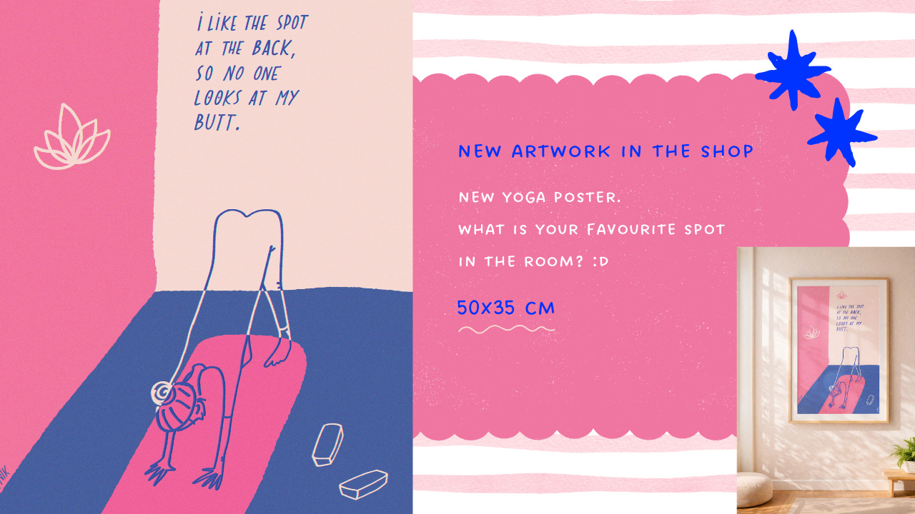 Happy Friday, the 13th! ♡ I’m excited to tell you about the art residency in Bulgaria last month. But before that, let me show you my newest print - another one in the series of yoga. This time with an inside joke: a little truth for all of us who secretly choose the back row.