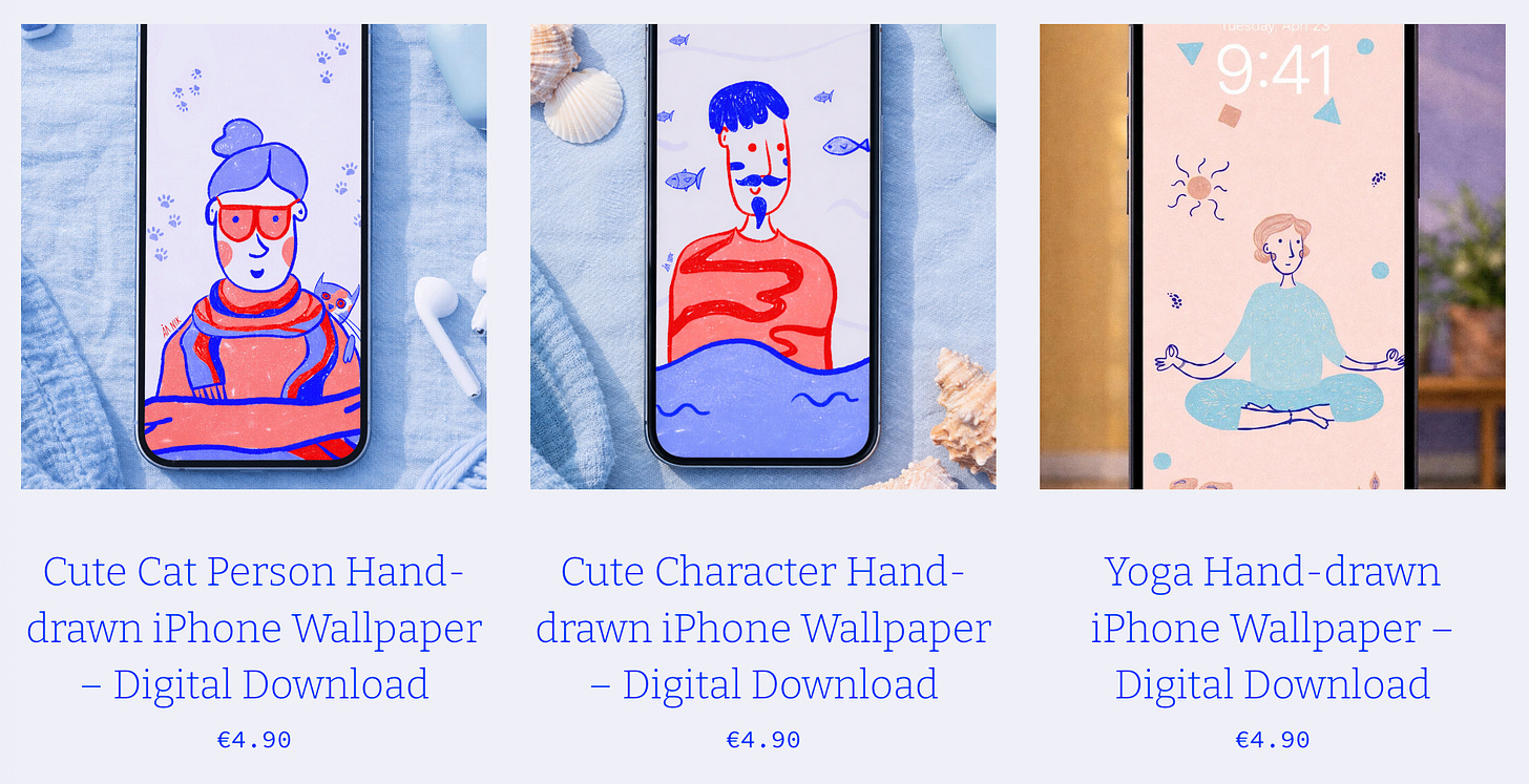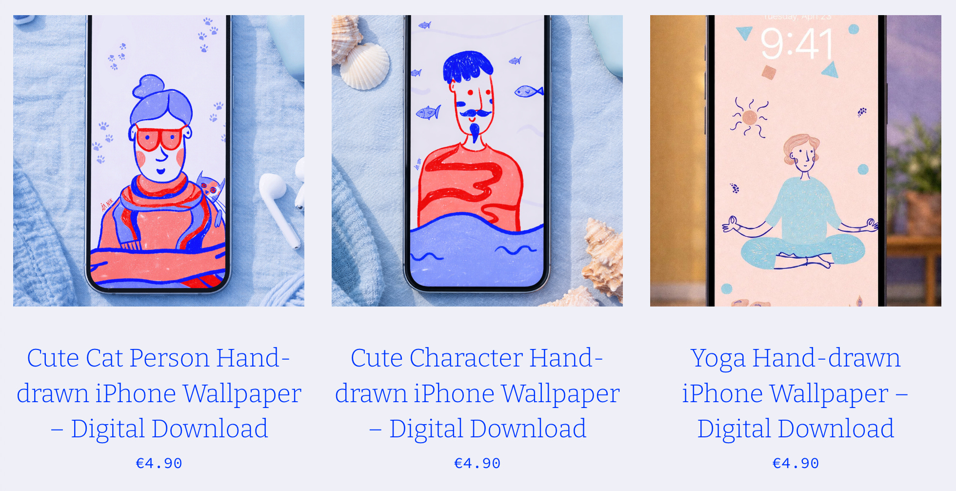 I’m happy to share that I made a new type of product for my art shop: a cute iPhone wallpaper series (that I hope will work on other smartphones as well) to refresh your lock or home screen. It is a cheap and small thingy you can get for yourself or as a gift, and can support my art on the way <3 It costs less than a beer at the bar! :D