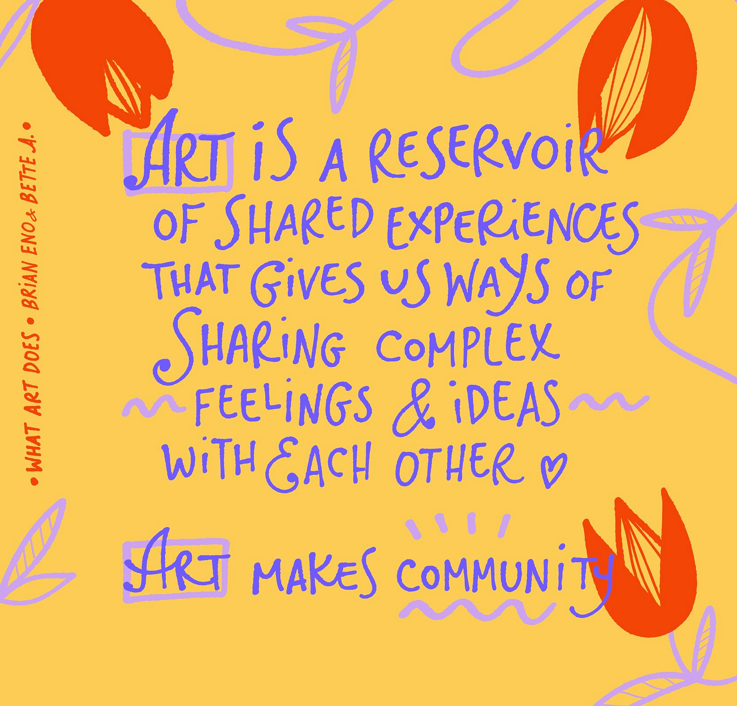Art is a lot about shared experiences. That is why we react more to some artworks than others - and each one of us sees a different thing in them. That is why, to some scholars, art is not the object itself, but what happens between you and that object. This is why Brian and Bette stress the fact that “as artists we don’t finish it: we start it”. We send an idea out in the open and then the people, the community, nurture it (or kill it :). What is precious about that idea is that it gives us a sneak peek into an alternative reality, or a potential reality. For bell hooks, “art exists to consider what is possible - how else things could be - not just what is”. This really triggered me, because it was one of the main motivations for me to create “Our Future Is Somewhere Here”, and I am dying to create a space where people can imagine the future, talk about it, and consider the importance of their choices along the way.
