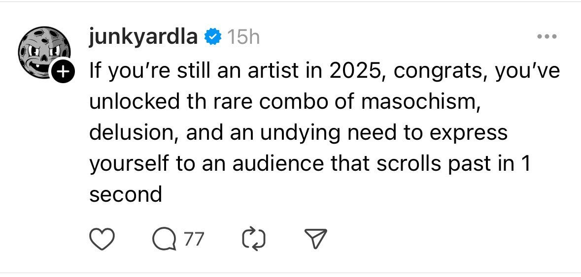 ❐ <internet wisdom to leave you with/> This month’s artist venting post comes from Threads - my new favourite place, xaxa